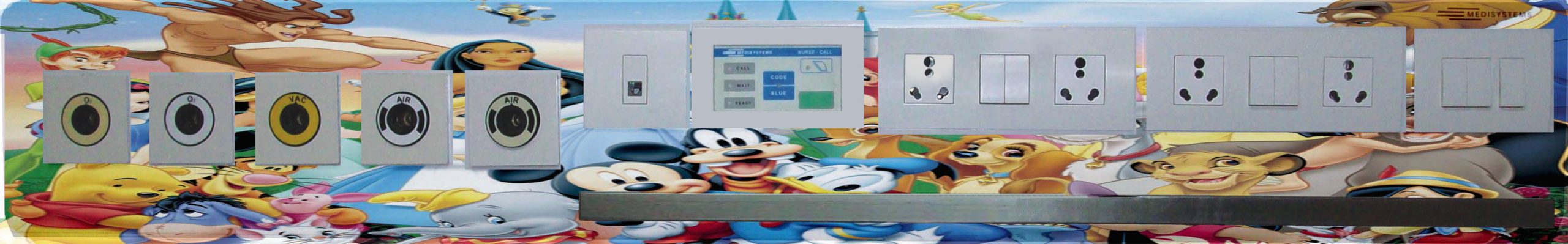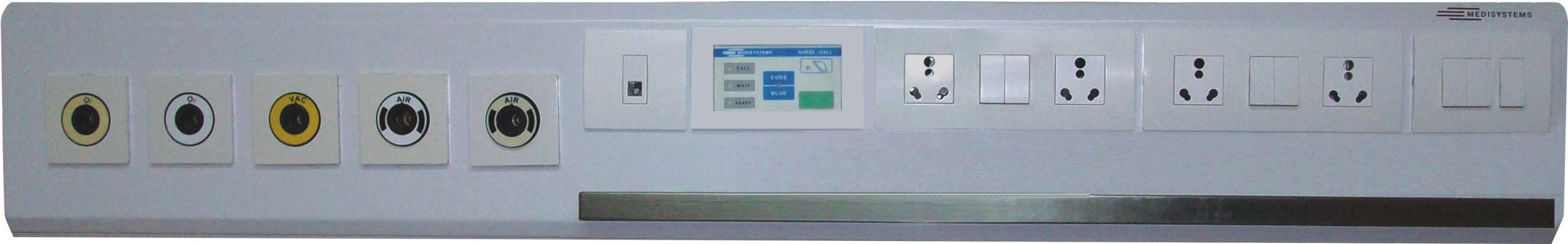 - Wall mounted, Mains operated bed-head panel specially designed for critical areas like ICU/MICU/SICU/NICU/PICU, Pre/Post-Op/Recovery & Emergency beds