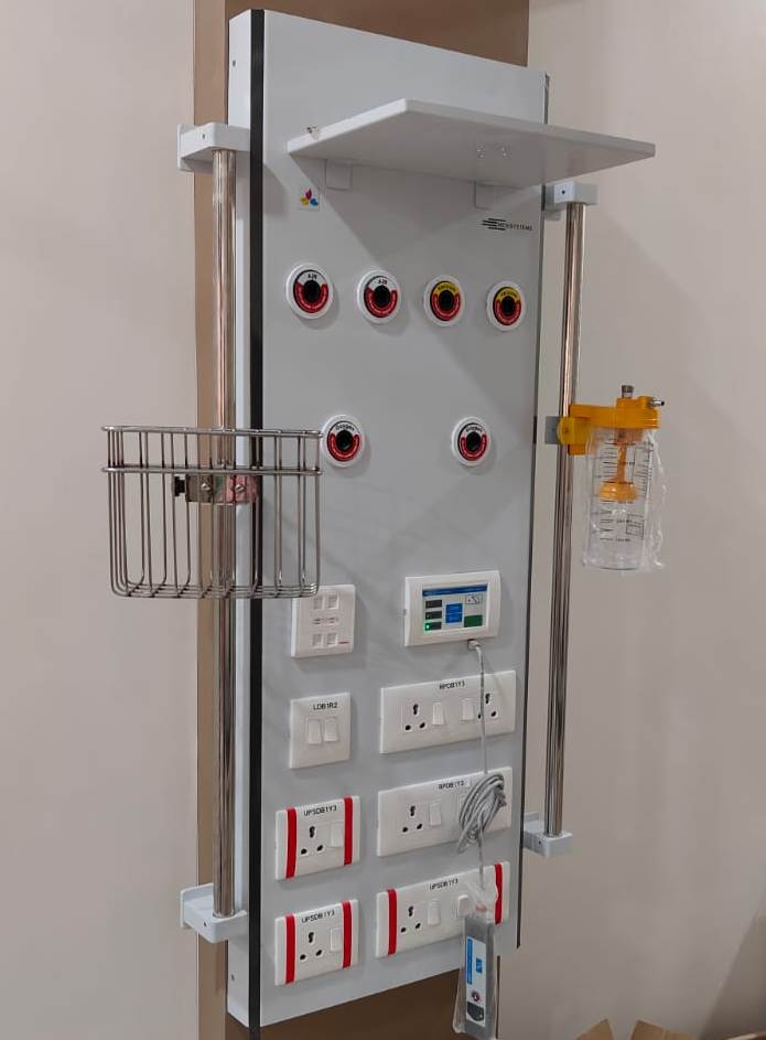 - Wall or Surface Mounted, Mains Operated Bed-Head Panel for use in ICU, Recovery, Wards & Patient Room beds. Panels are specially designed for areas with limited wall space adjoining windows, pillar or column areas. Can also be designed for placement in the centre between two beds in semi private rooms with separate utilities for each side.